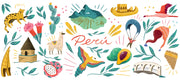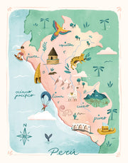 Ilustraciones para el pack Bicentenario de Maracumango Shop. Primero se ilustró un mapa del Perú con diferentes lugares emblemáticos, flora y fauna. Los mismos elementos fueron utilizados para armar el estampado de la taza y de los notepads.