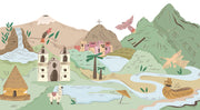 Mural inspirado en diferentes sitios emblemáticos, fauna y flora del Perú para las nuevas oficinas de KOICA en Lima.